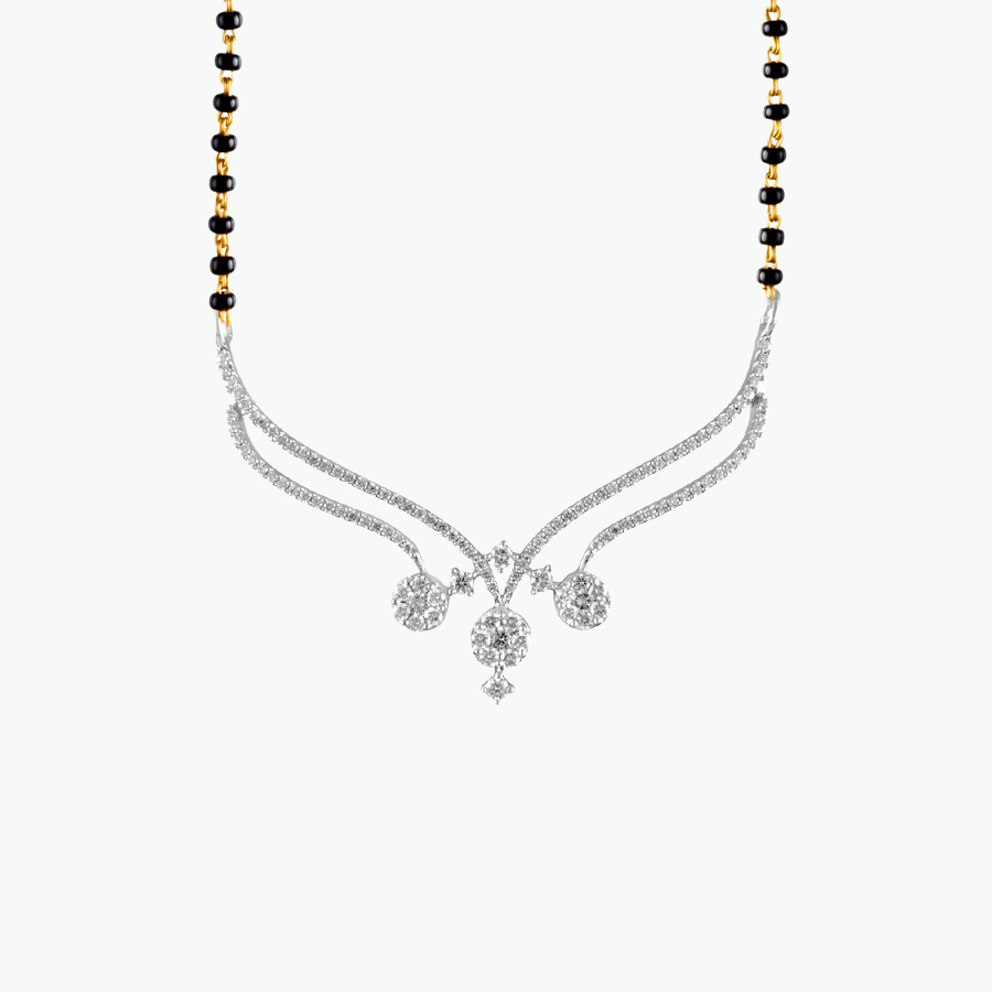 This mesmerizing 18 karat Yellow Gold Diamond mangalsutra with FG VVS round brilliant Diamonds stays true to the vision of the classics. A true masterpiece, this jewel will perfectly define the undeniable beauty of every woman.