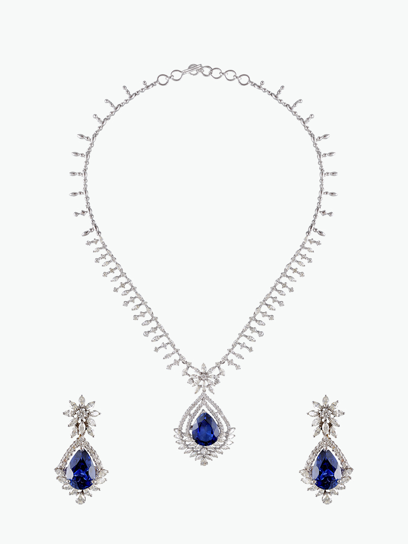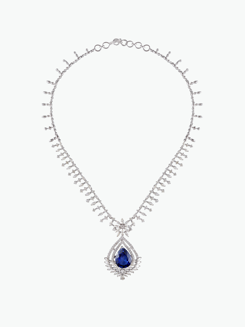 Put forth your confident self and be a vision to behold, as you adorn this intricately carved excellence in 18 karat White Gold Diamond with FG VVS Fancy shaped Diamonds from our treasure of jewels.